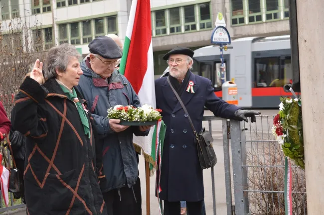A műsor végén Perényi János bécsi magyar nagykövet, Radda István az 56-os Szabadságharcos Lovagrend Osztrák-Német Nagypriorátusa, a Kerekasztal elnöke és Radda Marika a Club Pannónia elnöke, Paksánszki Szilveszter a Bécsi Magyar Katolikus Egyházközségi képviselőtestületének elnökhelyettese, Sas László és Szőke Péter az „Europa”- Club vezetőségi tagjai valamint a Komensky iskola kétnyelvű óvodai csoportja helyezte el koszorúját a szobornál.
