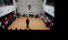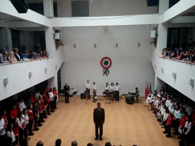 A nap következő állomásán a Téglás Gábor Elméleti Líceumban fiatalos, már-már forradalmi légkör fogadta az egybegyűlteket. Első napirendi pontként a már korábban meghirdetett kokárda készítő verseny pályaműveit csodálhatta meg, aki korán érkezett. A sokszínű előadás, melyet az iskola növendékei a kisebbektől a legnagyobbakig közösen mutattak be, utat talált mindenki szívéhez. A versek, szónoklatok, imák, valamint a katonásan pattogó ritmusos forradalmi énekek (Lengyel Izabella vezényletében, a Szent Ferenc Alapítvány gyermekzenekara, és az Iskolakórus előadásában) segítettek az ünnep igazi üzenetét megérteni.