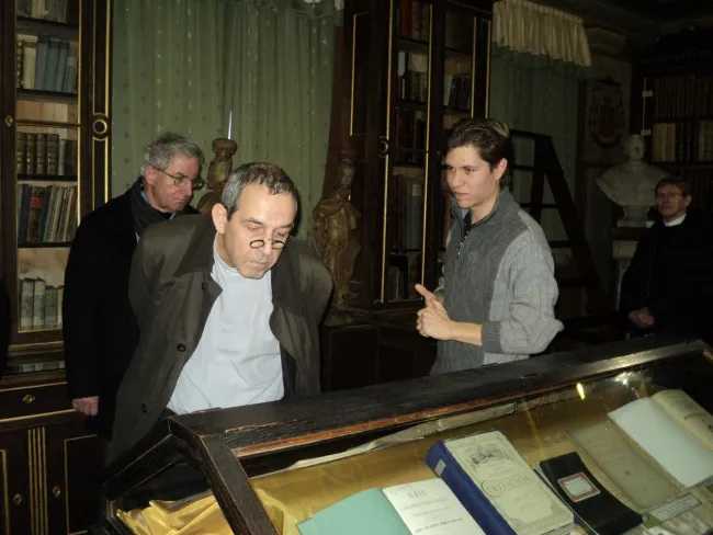 A szentmise végén a papok a Szent Márton-oltárnál elimádkozták közösen a Szent Márton Jubileumi Évre megfogalmazott imádságot, majd Schauermann János plébános körbevezette a csoportot a Szent Márton Látogatóközponton, onnan pedig a Brenner János Kollégiumba igyekeztünk, ahol Msgr. Császár István apát, általános helynök, a székesegyház plébánosa várt bennünket. Megtekintettük a kollégium kápolnáját, majd ugyancsak nagy érdeklődéssel időztünk el az Egyházmegyei Könyvtárban, Baranyai Martin tárlatvezető tájékoztatását hallgatva.