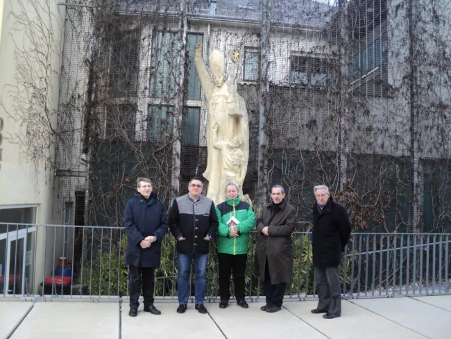 A székesegyházba az irgalmasság kapuján át léptünk be; ott rövid körültekintés, elmélkedés, imádkozás és a Boldogasszony anyánk eléneklése után a toronyba is felmentünk. A püspökségen elbúcsúztunk vendéglátóinktól – köztük Veres András püspök úrtól is –, és estére visszaértünk Kismartonba.