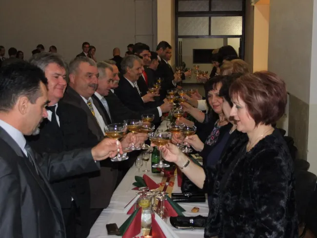 Beszédükben említést tettek erről a rendhagyó dátumról, ugyanis a farsangi időszak első napján még nem rendeztek bált, ez volt az első alkalom. A bálozók a zoboralji borászok által biztosított tájjellegű, minőségi borokat és pálinkákat is megkóstolhatták. A jó hangulatról a Flamingó együttes gondoskodott. Derzsi György, az est sztárvendége pedig fergeteges hangulatú koncerttel és jóízű vidám tréfákkal szórakoztatta a közönséget.