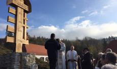 Azt követően az emlékmű koszorúzása és megáldása következett, a koszorút ösztöndíjas társammal, Varga Gabriellával közösen helyeztünk el. Ez a rendezvény azért is volt különleges számunkra, mert a történelmi Magyarország túlsó feléből érkező ösztöníjas társammal együtt lehettünk ott. A magyarságunk mélysége, amelyet lelkünkben élünk meg, most nemzetünk térképen mérhető nagyságát is kifejezte, hiszen Gabiék közel 1200 km-t tettek meg az Ezeréves Határig.