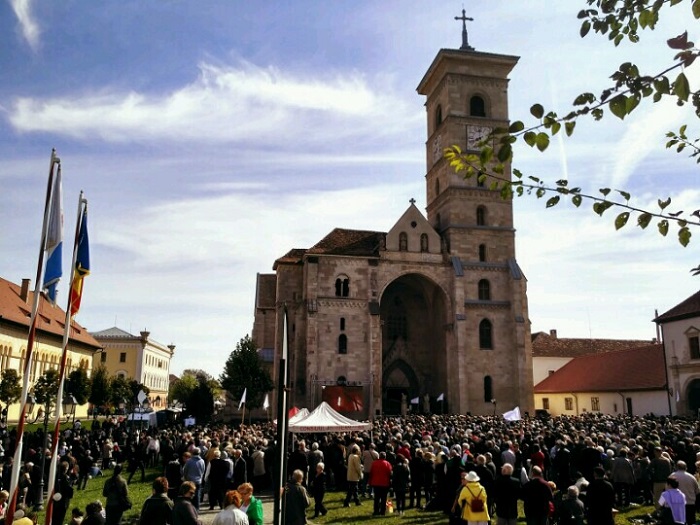 Aki volt már a messze földön híres csíksomlyói búcsúban, és 2016. szeptember 29-én éppen Gyulafehérváron tartózkodott a Szent-Mihály székesegyház előtti téren, abban a személyben az a különös érzet támadhatott, hogy a Somlyó nyeregre tévedt!