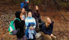 A hosszú játékban megéheztünk, így nekiláttunk a magunkkal hozott étel elfogyasztásának. Nem tűnődtünk sokáig, mert a hideg sokunkat átjárt. Ebéd után folytattuk utunkat fel a sziklára, ahonnan gyönyörű kilátás várt minket még annak ellenére is, hogy a párás hideg levegő nem oszlott el. A csodálkozás után elkezdtük megközelíteni a patakot. Meredek domboldalon kellett leereszkednünk. Szép tisztás tárult elénk, meg is beszéltük, hogy nyáron kijövünk ide sátrazni. Sajnos többen belemerítettük cipőinket a patak hűs vizébe.