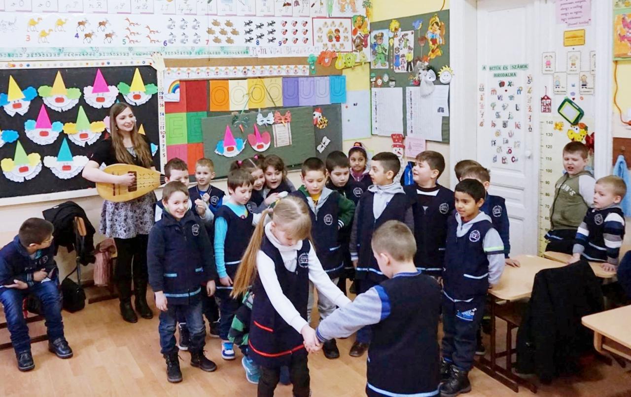 Szilágysomlyóra kerülésem után mentoromnak, Józsa Nándor Lórándnak köszönhetően, volt szerencsém megismerni a Báthory István Általános Iskola diákjait és pedagógusait. Különóráim mellett lehetőségeim adódtak tanrenden belüli foglalkozások megtartására is hittan, illetve zene és mozgás órák keretében. Látogatásaimkor hangszer bemutatókat tartok, valamint népdalokat és népi játékokat tanítok, olykor modern élménypedagógiai módszerekkel színezve. Boldogan fogadom a tanárok felkéréseit, mert ezen alkalmak során legalább annyit kapok a gyermekektől, mint amennyit én adhatok nekik. Igazán gyorsan megtaláltuk a közös hangot és csodás pillanatokkal gazdagítjuk egymást, jelenleg legalább heti két alkalommal.