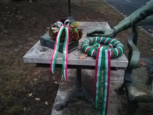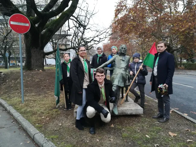 Kirándulásunkat a Debreceni Egyetemen zártuk, ahol Hatvani István szobránál gyűltünk össze, hogy koszorúval fejezzük ki tiszteletünket, egyszerre a Rimaszombatban emlékezőkkel.