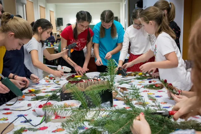 A kézműves műhelyekben mézeskalács díszítésére, adventi kopogtató, almás gyertyatartó készítésére, karácsonyi gipszfigura- és csengettyűfestésre, arany dió készítésére is volt lehetőség. A gyermekek nagy alkotókedvvel ültek le az asztalokhoz és mélyültek el a kézműveskedésben.