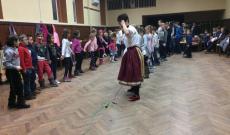 Délután érkeztek a meghívott óvodások, iskolások és hozzátartozóik a mulatságra. A gyermekek farsangi ruhába öltöztek, maszkot, álarcot viseltek a jeles napon. Szép számmal voltunk jelen, kb. 60 gyermek és a kísérő felnőttek. Érkezéskor már farsangi fánkkal kínálták az egybegyűlteket. Evést és köszöntést követően a felső tagozatosok egy csoportja játszott el egy farsangi, mókás jelenetet a kicsik nagy örömére. Majd az Ihók és Mihók c. mesét adták elő. Ezután táncos játék következett a jó hangulat fokozására. Nagyon lelkes, aktív közreműködői voltak a gyerekek és a felnőttek is a játéknak. A farsangi mulatság nem is végződhetett volna másképp, mint közös tánccal, ahol sárközi cinegést tanulhattak és járhattak a kedves vendégek. Öröm volt látni a gyermekek boldog arcát!