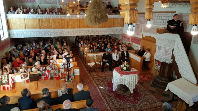 A templom teljesen megtelt, sok helyen három generáció hölgy tagjai egymás mellett foglalták el helyeiket az 1911-ben a folyamatos tűzvész pusztítások utáni harmadszor is ujjá épített templom padsoraiban. Egy ilyen nagyszabású esemény alkalmával a falu összes lakosa igyekezett ott lenni az istentiszteleten, így a meghívottakkal együtt közel 300-an voltak tanúi a jeles eseménynek.
