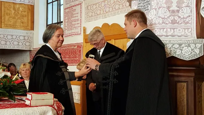 Az igehirdetés után került sor az egyház szimbólumainak - a szentírás, a pecsét és a templom kulcsának - az átadására. Erre az eseményre Barta István-Zsolt Molnár Irmát kérte fel. A lelkészasszony megtisztelőnek és meghatónak találta ezt a gesztust a fiatal lelkésztestvére részéről, és örömmel fogadta el a felkérést.