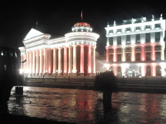 Miután a határt átléptem tudatosult bennem, hogy egy időre búcsút mondhatok a magyar feliratoknak, a latin betűknek. Este érkeztem meg a macedón fővárosba, mely európai nagyvárosokat megszégyenítve, fényárban úszott.