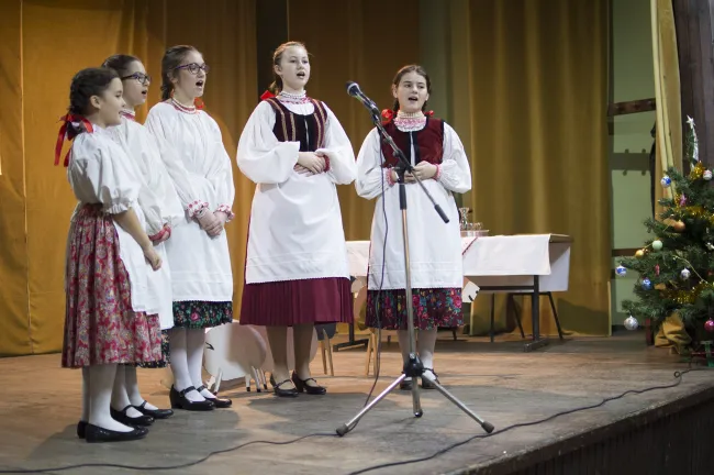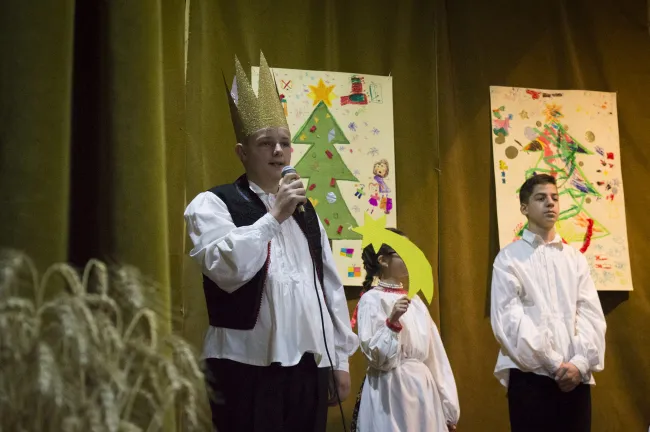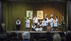 Először a református óvoda növendékei léptek fel karácsonyi versekkel, mondókákkal, ezután pedig az általános iskolások gazdag műsora következett. A betlehemes műsorszám és az ünnepi versek és énekek mellett számomra a legizgalmasabb az az előadás volt, amelyben a gyerekek bemutatták a hertelendyfalvi székelyek Bukovinából hozott, hagyományos karácsonyi szokásait. Habár ezek a szokások részben még ma is élnek a faluban, a csoportvezetők fontosnak tartják, hogy ily módon is segítsék a hagyomány továbbélését.