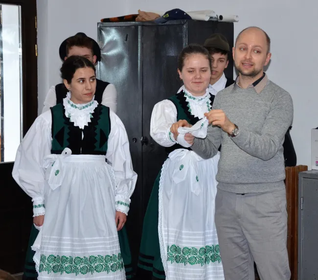 A nagyenyedi Fügevirág Táncegyüttes tagjai vajdaszentiványi táncokat mutattak be, majd a viselet bemutatása után, egy kis néprajzi ismertető következett az adventi időszakról, amit közös énektanulással zártunk. Erre az alkalomra elfogadta meghívásunkat Turzai Noémi, aki a kézműves foglalkozást vezényelte. Rénszarvast és varázsdobozt készítettünk együtt a gyermekekkel.