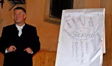 Az énekeket követően Kémenes Lóránt ragadta magához a szót, aki interaktív módon próbálta kibogozni a „szórvány” fogalom mélyebb tartalmát. Mint mondta, levelet kapott az Akadémiától – képzeletben –, miszerint a szórvány szót kilopták a szótárból, és pótolni kellene valami mással. A közönség soraiból érkeztek is a javaslatok szép számban: diaszpóra, magvány, maradék, kisebbség, beolvadás, megsemmisülés, remény, összefogás stb. Majd ezek közül a türi plébános, ugyancsak a hallgatóság javaslatára kiszedte azokat a felvetéseket, amelyek valamiért mégsem illeszkedtek oda. Ezek után csak a tömbmagyarságból származó vendégeket kérdezte meg, hogy ők mit gondolnak: a gondolatpárosítások közül melyikkel nem találkoztak szülőhelyükön? És olyan fogalmak kerültek ki, mint az összefogás, az elfogadás, a nyitottság, a jó értelemben vett alkalmazkodóképesség, a különbözőség. Mindezt azért vezette le így Kémenes Lóránt atya, hogy bemutassa, a szórványban élő magyarok lelkiekben gazdagabbak, akik képesek mindarra, amire a tömbmagyarságban élők csak nagy történelmi szorongatások esetén. Még annyit fűzött az egészhez hozzá, hogy a kisebbség szót nem szereti használni, sőt, elítél mindenkit, aki a szájára veszi, mert a szórványban ugyan számbelileg kevesebben vagyunk, de senkinél nem vagyunk kisebbek, kisebb képességűek.