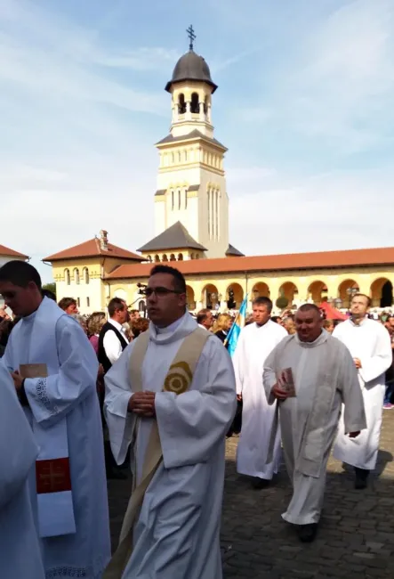2016. szeptember 29-én, délelőtt 9 órakor Kémenes Lóránt atya vezetésével türi és balázsfalvi érdeklődőkkel teli busz indult Gyulafehérvár ezeréves székesegyházának Szent Mihály napi búcsús szentmiséjére, valamint a Gergely Zoltán szobrászművész által készített Márton Áron kőkoporsót bemutató és megáldó különleges szertartásra. Utunk során rózsafüzért imádkozva és egyházi népénekeket énekelve közösen öltöztettük ünneplőbe lelkünket, majd a székesegyházhoz érve csatlakoztunk a hívők hatalmas tömegéhez. Kárpát-medencénk területéről közel 5.000 fő zarándokolt ide, hogy részese legyen ennek a csodás eseménynek. A szertartással egybekötött búcsús szentmisét Miguel Maury Buendía bukaresti apostoli nuncius mutatta be Jakubinyi György gyulafehérvári érsek szentbeszédével, számos egyházi képviselő társaságában. A ceremónia végén Soltész Miklós magyar vallásügyi államtitkár mondott ünnepi beszédet, mely Márton Áron jelentős gondolatai közül többet is magában foglalt. Ez alkalommal legerőteljesebben a következő jutott el szívemig: "Sok-sok megaláztatás, támadás ellenére is hűen vallotta, hogy az egymásba ékelten élő magyar és román népnek békében, egymást tisztelve kell élnie." Bízom abban, hogy tanítása és példája az idő múlásával egyre több követőre talál majd, hiszen igazán boldog mindennapokat csak eszerint élhetünk meg itt, Erdélyben.