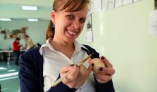 Az óvodások és iskolások évek óta a magyar ház állandó vendégei húsvét előtti héten. - Második évben az iskolásokat is bevontuk. Az igazgatóval megszerveztük az osztályok részvételét, majd a medgyesi magyar óvodások is becsatlakoztak. – teszi hozzá Gyöngyi. Miközben beszélgetünk, még kicsit megigazítja a viaszmelegítő szerkezetet – az utolsó simítások ezek, hiszen fél óra múlva érkezik a harmadik osztály. Az óvodások az óvónénik segítői kezeire is számíthattak és a hét nagy részén a MADISZ munkatársai is besegítettek, így kisebbek is csinos hímestojással és sikerélményekkel térjenek haza. Kérdésemre, miszerint mennyire nehéz a gyerekeknek a motívumok pontos megrajzolása, Gyöngyi egy csipet büszkeséggel mondta: „Évről évre ügyesebbek. A mintákat jól látható helyekre kifüggesztjük a teremben, ezek alapján választhatnak, de a szabad kreativitásukra is számítunk. A nyolcadikasoktól viszont szoktam kérni, hogy egy tojás mindenképpen a hagyományos, komplikáltabb hímzést kapja meg. Ők már képesek erre. És sokuknak valóban jól is megy. Fontosnak tartom, ha már megvan ez a tudásunk, akkor adjuk át. Évről évre ez motivál a szervezésben.”