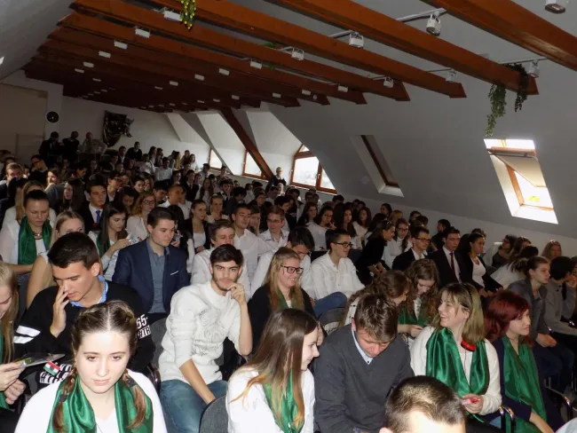 A Rákóczi Szövetségnek köszönhetően már évek óta jó kapcsolatot ápol Zoboralja egyetlen magyar szakközépiskolája és a szombathelyi Bolyai János Gyakorló Általános Iskola és Gimnáziuma. Ez a jó viszony most is megmutatkozott. Ahogy megérkeztünk az iskolába, a tanárok és diákok széles mosollyal és kedves szavakkal köszöntöttek minket. Felkísértek bennünket az előadói termükbe, ahol közösen elénekeltük a magyar Himnuszt, majd több osztály diákjai megkezdték a színes és tartalmilag gazdag előadásukat. A műsor részét képezte a népdaléneklés, versmondás, filmbejátszások, eredeti hangfelvételek. A szereplőkkel együtt átélhettük a budapesti utcák forró forradalmi hangulatát is, melyet a diákok színvonalas színészi előadásának köszönhetünk. A méltó előadások után az iskola igazgatója, Papp Tibor köszönte meg diákjainak az előadást. Ünnepi beszédében üdvözölt bennünket, alsóbodokiakat is. Nagy meglepetésünkre Kukor Ferenc igazgatóhelyettes úrral külön ajándékkal is kedveskedtek nekünk. Az ünnepi műsort a szózat eléneklésével fejeztük be, majd ezután megebédeltünk. Az ebéd elfogyasztása után kötetlen szabadidőt kaptunk, amely jó alkalom volt arra, hogy a két iskola diákjai jobban megismerjék egymást. Természetesen voltak, akik nem éltek ezzel a lehetőséggel, hiszen nekik már nem is volt rá szükségük, mert évek óta példaértékű barátságot ápolnak egymással. A bolyaisok küldöttsége végigkísért bennünket a hatalmas iskolában. Mindenki ámulattal nézte a csúcstechnológiával felszerelt és beépített kémiai előadói termet a modern felszerelésekkel.