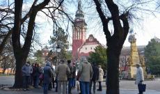 A Tanács megtekintése után idegenvezető csatlakozott hozzánk, aki bemutatta az 1908-10 között megépült szecessziós Városháza épületét, mesélt a belváros magyar vonatkozású részeiről, majd elsétáltunk a magyar kormány segítségével éppen felújítás alatt álló Zsinagógához. A délután további részében lehetőség nyílt az adventi vásár megtekintésére.
