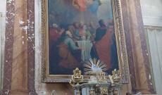 Az oltárkép Kalocsáról származik. A templom alatt kripta található, amelyben az építtető, Polimberger földi maradványai nyugszanak; a kriptát az idők során többször is feltörték.
