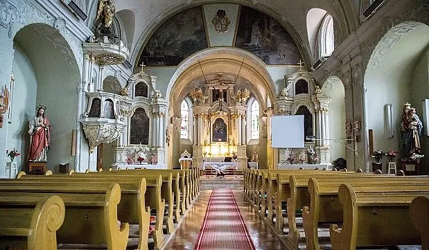 A katolikus templomot és zárdát 1737-ben a ferences szerzetesek építették. 1747-től iskolát is működtetnek, ám az 1760-as nagy tűzvészben leégett a templom teteje, a templom teljes felszerelése, a rendház és az iskola is. 1761-ben épült újra a mai alakjában. A régi berendezésből maradt fenn a főoltár, amelynek érdekessége, hogy középső része forgatható. A templomban több embernagyságú aranyozott faszobor látható. A szószék fölött Szent Mihály főangyal szobra is aranyozott. A 18 regiszteres orgona 1895-ben készült. A zárda ebédlőjének falait festmények díszítették, ebből egy ma is látható, belső udvarán két napóra mutatja az időt reggel 8-tól délután háromig. Műemlék bejegyzési sorszáma BV-II-aB-11676.26